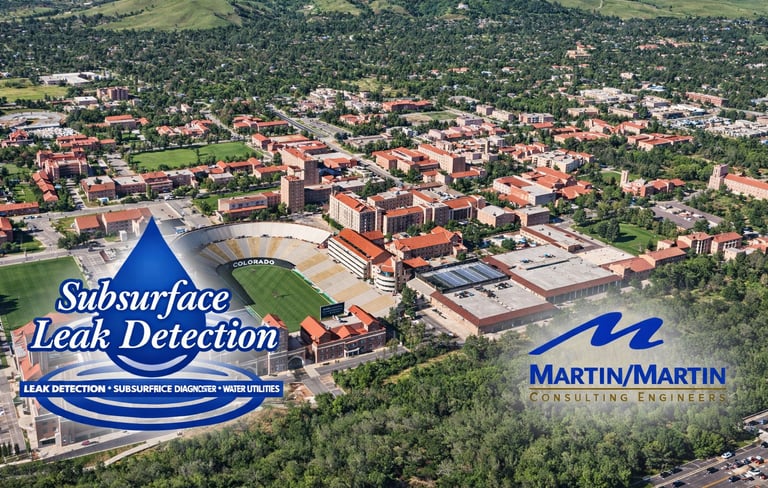 Subsurface Leak Detection has partnered with Martin & Martin, a leading civil engineering firm, to support the University of Colorado Boulder’s water conservation initiatives. As part of this effort, Artisan Consulting is conducting a comprehensive, campus-wide water survey focused on the older portions of the underground infrastructure to identify active and concealed leaks.
